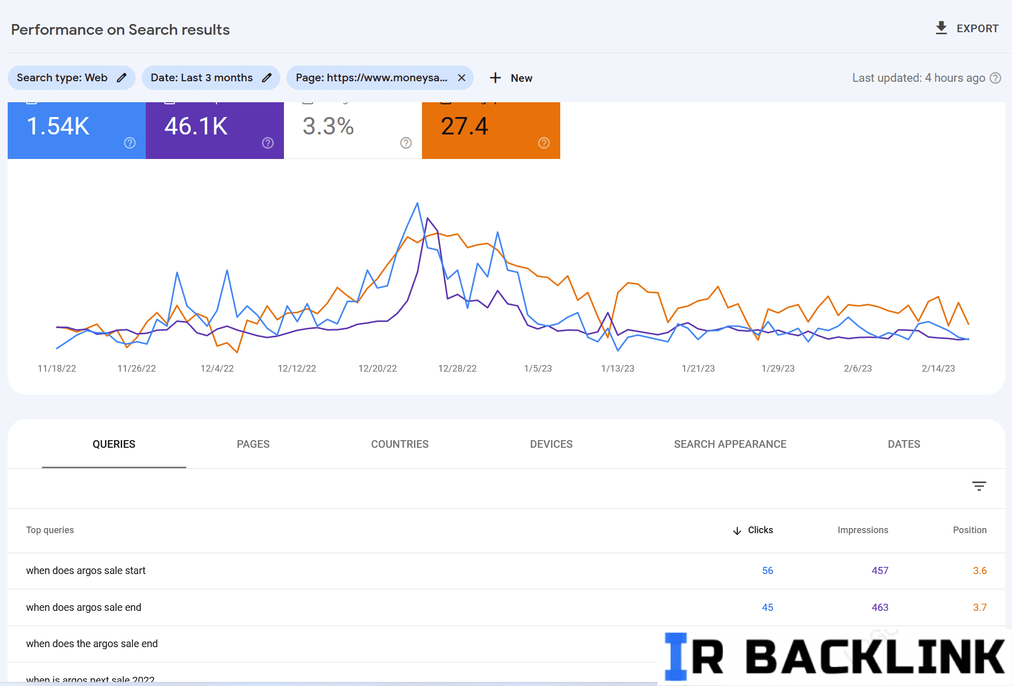 مقدار میانگین رتبه، میانگین رتبه در صفحات نتایج موتور جستجو (SERPs) برای بازه زمانی انتخاب شده در گوگل سرچ کنسول است. میتوانید میانگین رتبه را برای کل سایت، صفحات، کوئریها و کوئریها بر اساس صفحه خاص مشاهده کنید.
